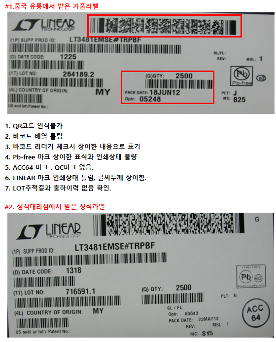 당사는 비교 분석 시 진품 여부에 대한 판단보다는 동일품인지,아닌지에 대한 차이점을 알려드리는데 집중하고 있으며, 웨어퍼 단선 여부 및 제품의 상이한 부분이 어떤 부분인지에 대한 검사 결과를 토대로 제공해 드리고 있습니다.