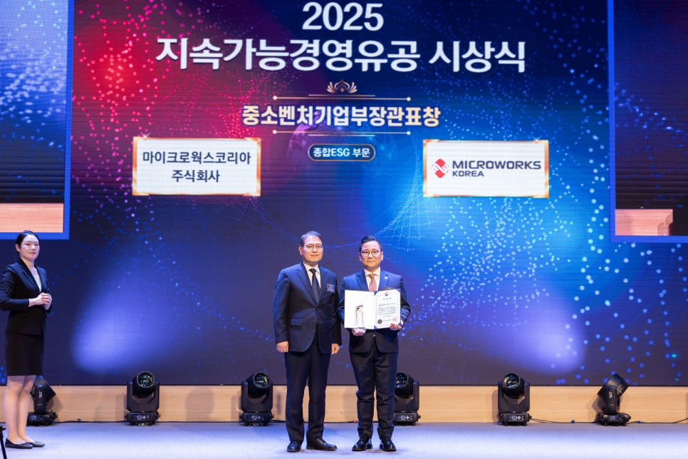 16일 한국과학기술회관에서 열린 '2025 지속가능경영 유공' 시상식에서 종합 ESG 부문 벤처기업부장관 표창을 수상했습니다.