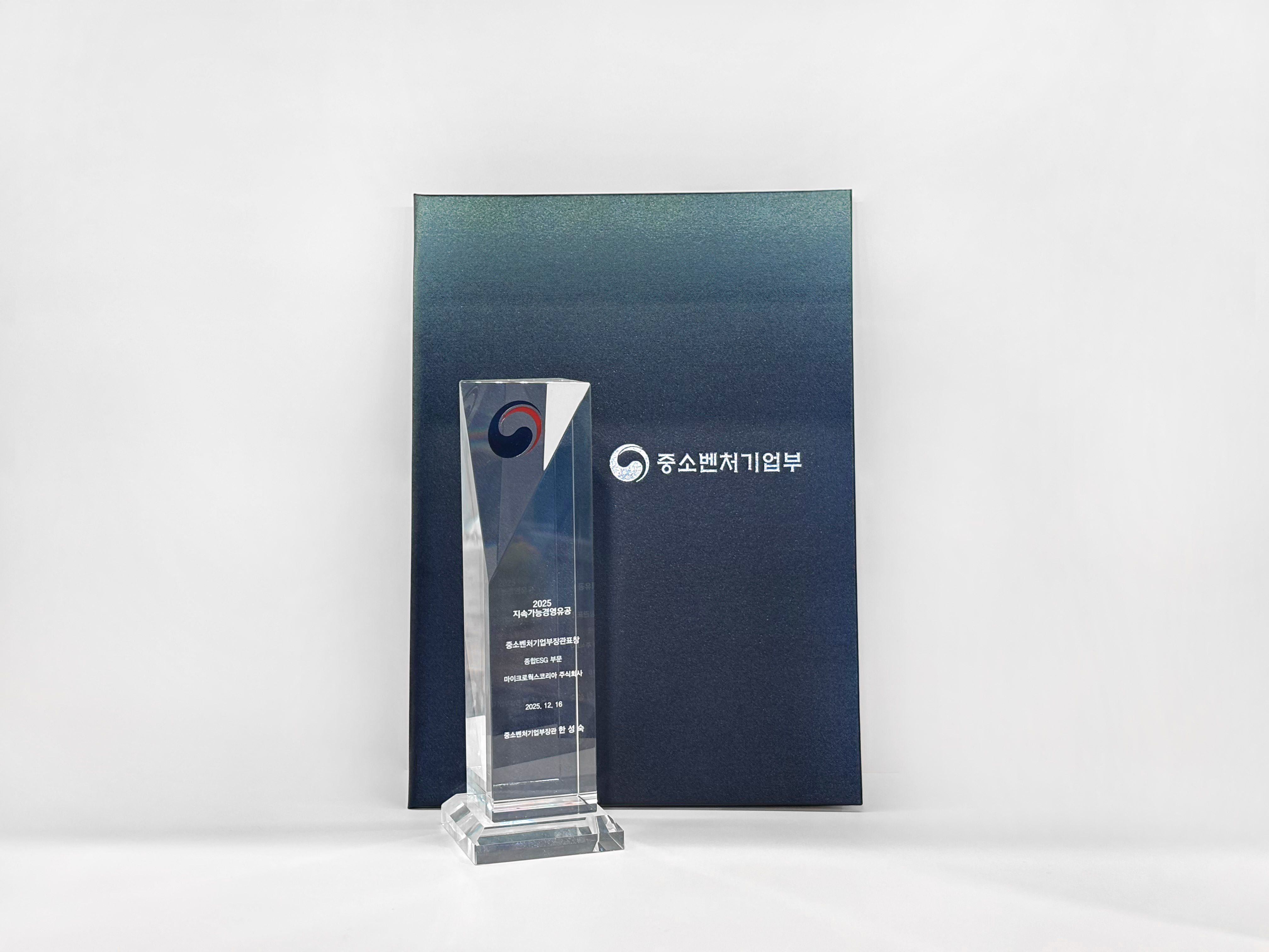 지속가능경영유공 종합 ESG 부분 중소벤처기업부장관표창 수상