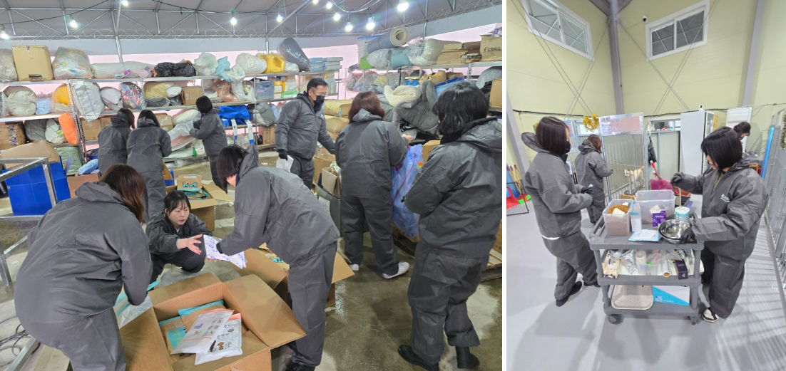 모든 견사 청소 및 정리가 끝난 뒤에는 사용했던 방진복과 마스크, 장갑을 모두 수거해 정리했습니다.